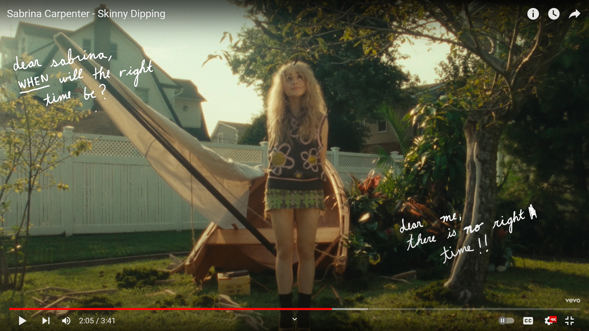 Written in a happier context, “Skinny dipping” is maybe the most beautifully written song from Sabrina. Flow just like a monologue, the track carefully embraces the message of being present with warm melodies that sound like a fresh spring morning! Nostalgic but soulful, Sabrina has perfectly captured the beauty of small little things through the lyrics: “We've been swimming on the edge of a cliff/I'm resistant, but going down with the ship/It'd be so nice, right? Right?/If we could take it all off and just exist/And skinny dip in water under the bridge”